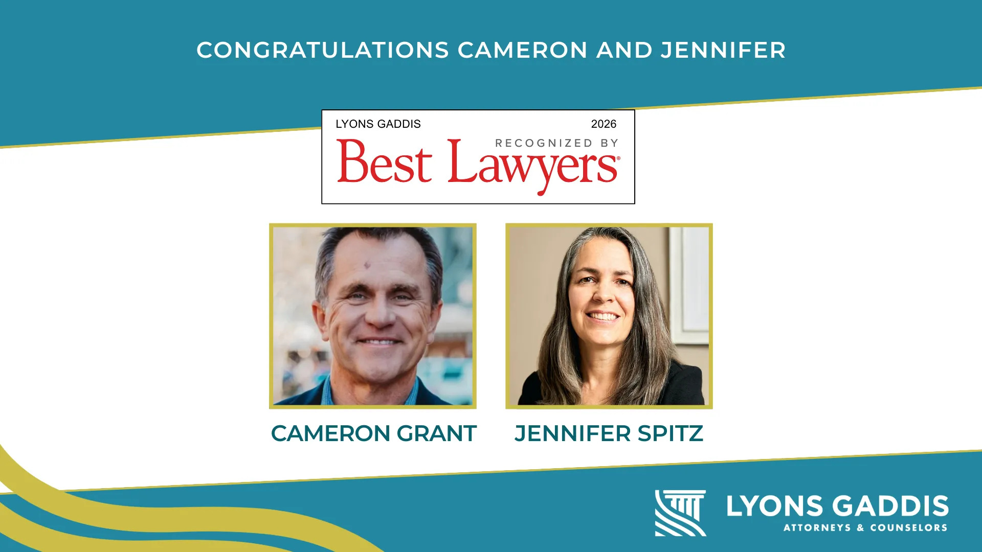 Lyons Gaddis is proud to announce that two of our attorneys, Cameron Grant and Jennifer Spitz, have been recognized in the 2026 edition of The Best Lawyers in America®. This honor reflects their dedication to excellence and their ongoing commitment to serving clients across Colorado.
