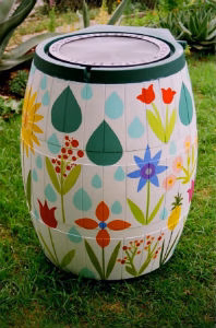 There are several restrictions on the use of a rain barrel. It must be located above ground, have a sealable lid, collects water from a downspout of a rooftop, and used for a single-family residence or individual residence that is part of a row of residences with common sidewalls, such as a townhouse or patio home (but with no more than 4 units). C.R.S. 37-96.5-102. You cannot have more than two rain barrels and no more than a combined storage capacity of 110 gallons; rain water must be used for outdoor purposes, such as lawns and gardens and used on the property where the water is collected. C.R.S. 37-96.5-103. You cannot use rain barrel water for drinking or indoor household purposes. Id. (I guess I cannot use it to wash my hair, so I’ll have to go back to the hair salon.) Last, the state engineer has the right to “curtail ran barrel usage,” probably because they are worried that if too many people have rain barrels, there will be too much water removed from the water rights system of prior appropriation. Id. A painted water butt in the UK